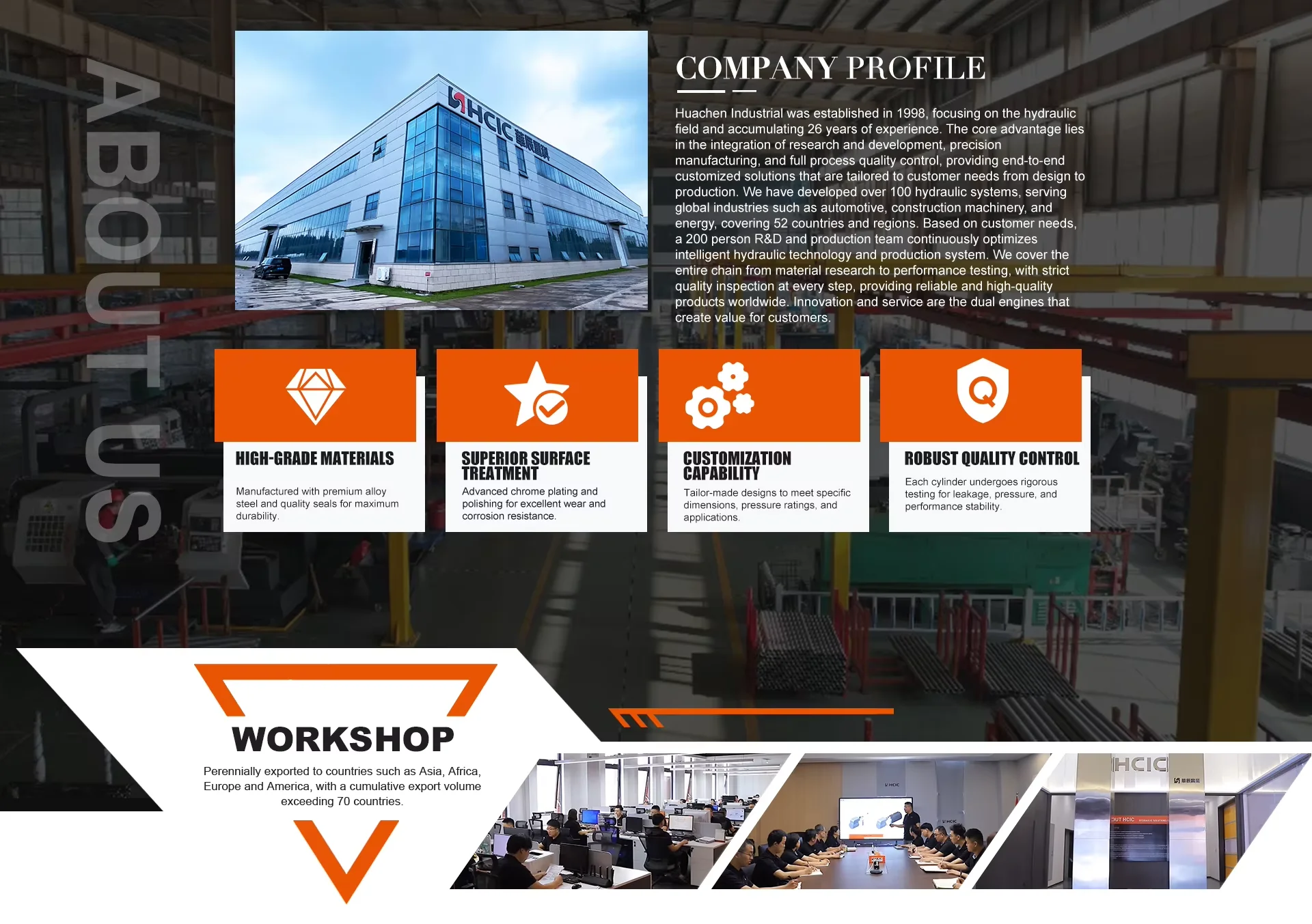 এইচসিআইসি হাইড্রোলিক একটি পেশাদার হাইড্রোলিক প্রস্তুতকারক, হাইড্রোলিক সিস্টেম ডিজাইন, উত্পাদন, ইনস্টলেশন, রূপান্তর, কমিশনিং এবং হাইড্রোলিক উপাদান ব্র্যান্ড বিক্রয়ে বিশেষজ্ঞ। আমরা প্রযুক্তিগত পরিষেবাগুলি অফার করি এবং আমাদের গ্রাহকদের নিরাপদ এবং নির্ভরযোগ্য পণ্য সরবরাহ করতে প্রতিশ্রুতিবদ্ধ যা সবচেয়ে বেশি চাহিদা পূরণ করে। HCIC ইঞ্জিনিয়ারিং টিম গ্রাহকদের তাদের আবেদনগুলি বোঝার জন্য তাদের সাথে ঘনিষ্ঠভাবে কাজ করে। অতুলনীয় ইঞ্জিনিয়ারিং এবং উত্পাদন অভিজ্ঞতার সাথে একত্রিত প্রমাণিত নকশা পদ্ধতি এবং উন্নত উত্পাদন সরঞ্জামগুলির একটি অ্যারে ব্যবহার করে, HCIC হাইড্রলিক্স সমালোচনামূলক অ্যাপ্লিকেশনগুলির জন্য নিরাপদ এবং নির্ভরযোগ্য হাইড্রোলিক সিলিন্ডার তৈরি করে, যা অতুলনীয় গ্রাহক পরিষেবা দ্বারা সমর্থিত। আমরা একটি অত্যাধুনিক উত্পাদন সুবিধার মধ্যে হাইড্রোলিক সিলিন্ডার ডিজাইন, প্রকৌশলী এবং উত্পাদন করি এবং আমাদের গ্রাহকদের সর্বোচ্চ মানের পণ্য নিশ্চিত করতে আমাদের ISO 9001-2015 প্রত্যয়িত মান ব্যবস্থাপনা সিস্টেম মেনে চলি।