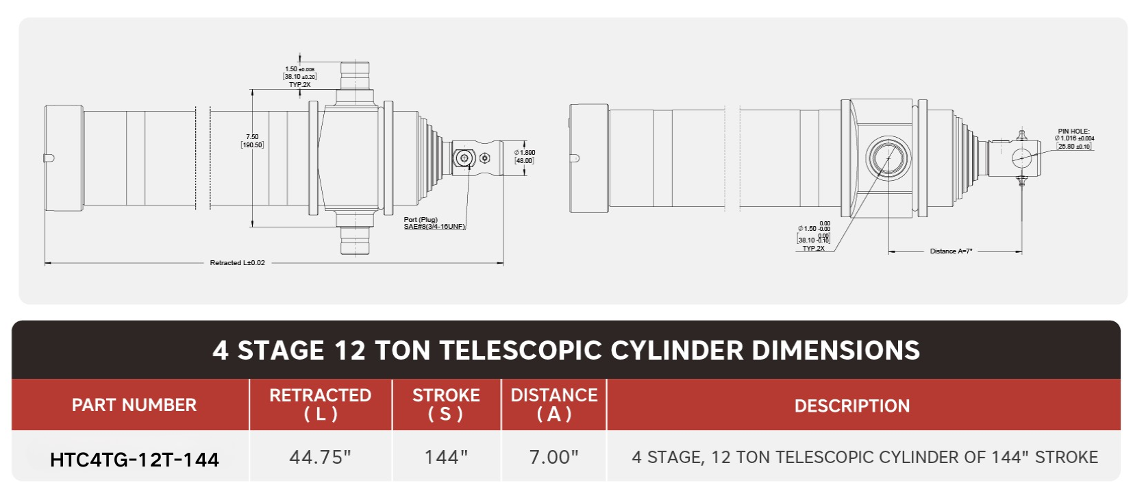 "HTC4TG-12T-144", 4 স্টেজ, 144 এর 12 টন" স্ট্রোক টেলিস্কোপিক সিলিন্ডার