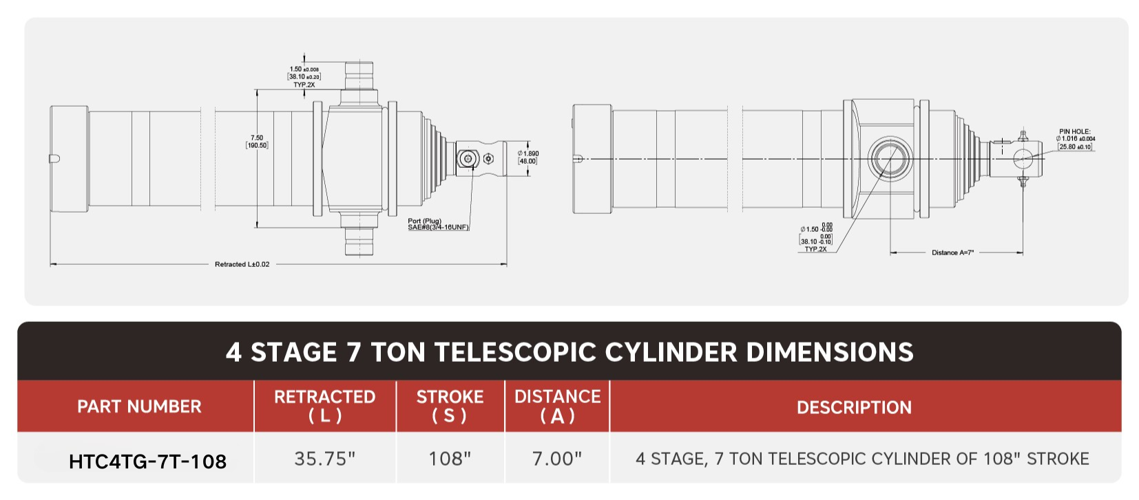"HTC4TG-7T-108", 4 স্টেজ, 7 টন অফ 108" স্ট্রোক টেলিস্কোপিক সিলিন্ডার