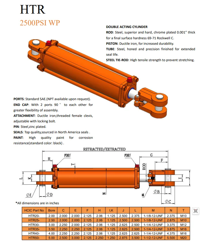 এই HCIC স্ট্যান্ডার্ড ক্লিভিস ওয়েল্ডেড সিলিন্ডারে একটি 4" বোর, একটি 36" স্ট্রোক এবং একটি 2" ব্যাসের রড রয়েছে৷ ডাবল-অভিনয় SAE 8 (-08) ORB(F) ওয়ার্কিং পোর্ট 2,500 PSI সর্বাধিক কাজের চাপ ক্লেভিস মাউন্ট 1" মাউন্টিং পিন অন্তর্ভুক্ত চকচকে কালো পেইন্ট টেকসই এবং বিবর্ণ হওয়া প্রতিরোধ করে